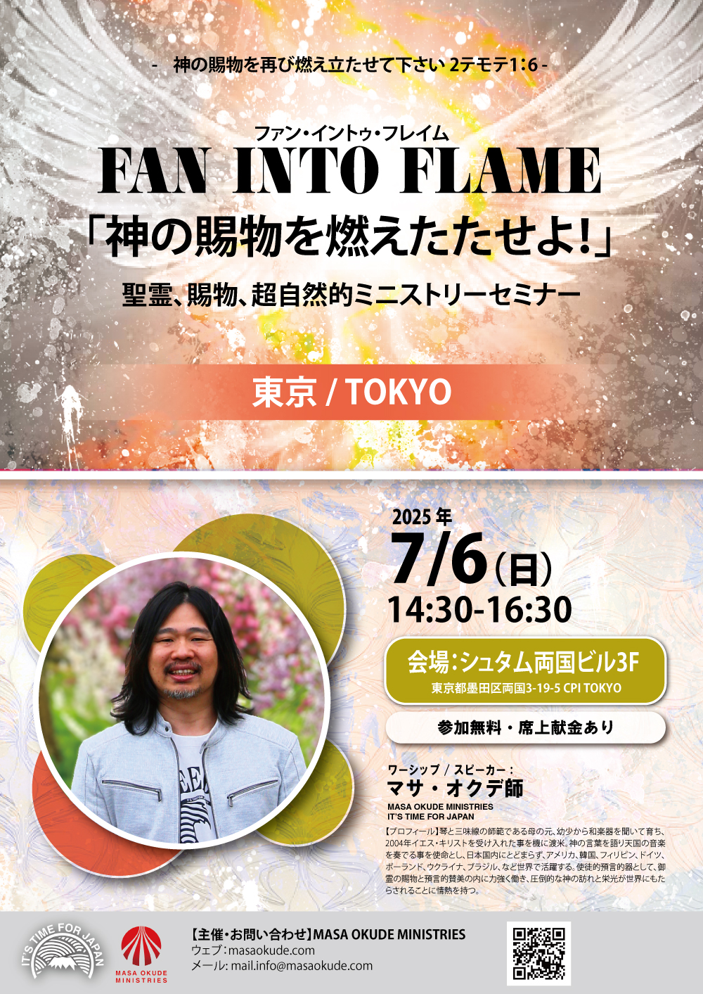 【東京現地会場にて開催】 FAN INTO FLAME「神の賜物を燃えたたせよ!」 聖霊、賜物、超自然的ミニス …