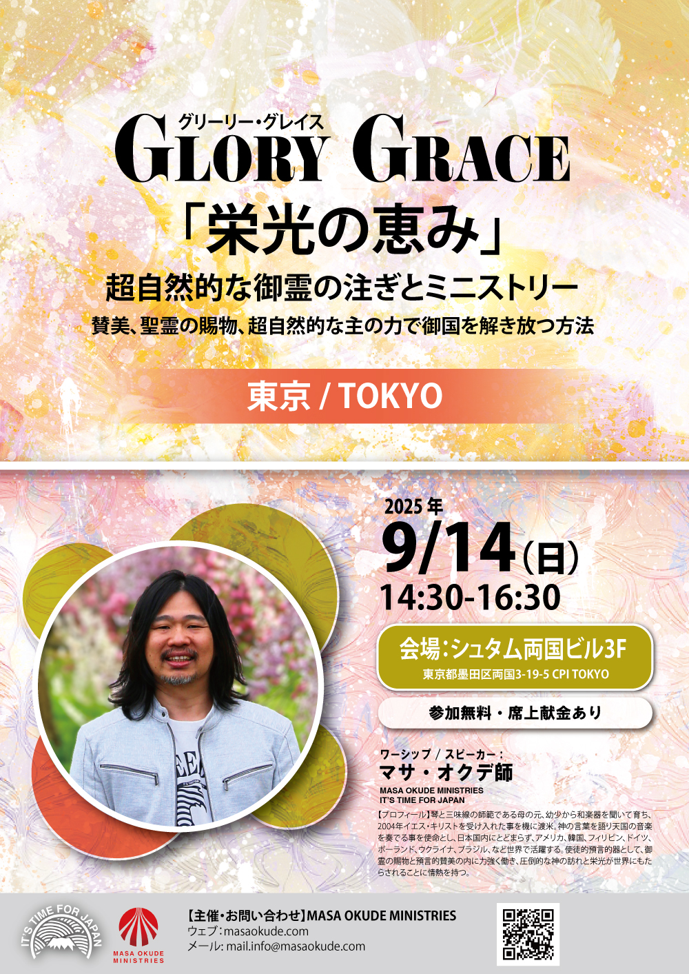 【東京現地会場にて開催】 Glory Grace「栄光の恵み」 超自然的な聖霊の注ぎとミニストリー 賛美、聖霊 …