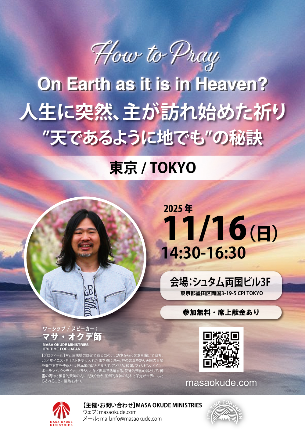 「人生に突然、主が訪れ始めた祈り」”天であるように地でも”の秘訣(東京)